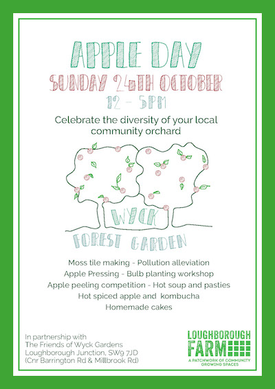 Sunday 24th October, 12-5pm, Wyck Forest Garden – Loughborough Farm in collaboration with the newly formed Friends of Wyck Gardens are celebrating “Apple Day”.