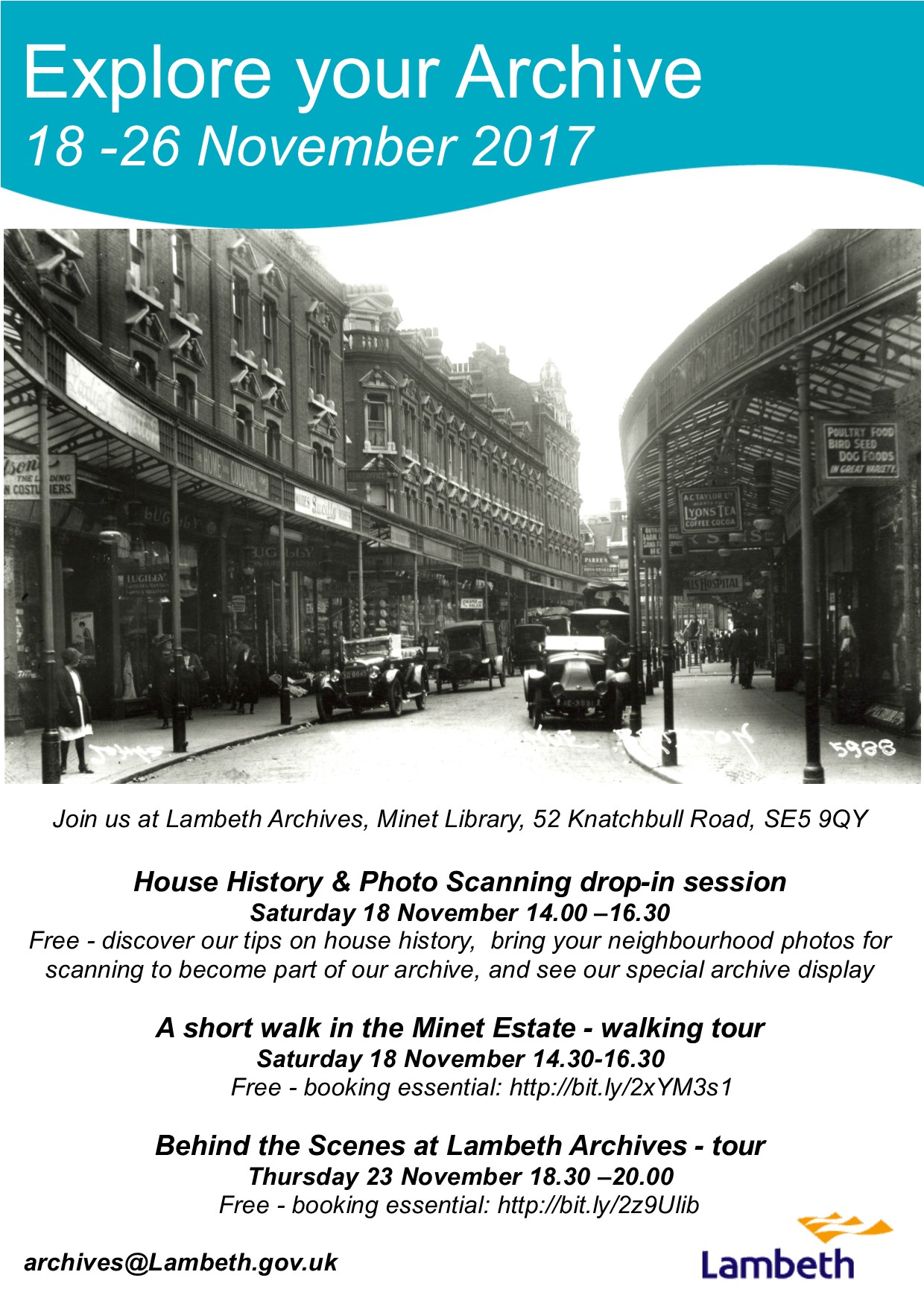 5 Latest news 5 2017 news 5 Behind the Scenes at Lambeth Archives – Tour Thursday 23 November 6.30pm – 8pm
