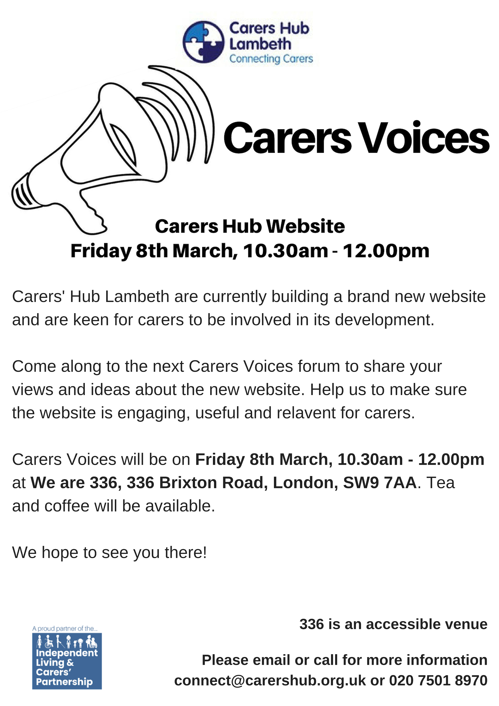 Places are limited – so booking is essential. Email connect@carershub.org.uk or call 020 7501 8970 to book your place.