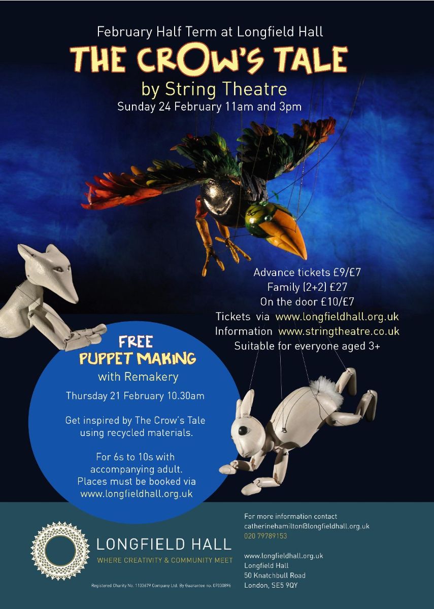5 Latest news 5 Crow’s Tale – children’s puppet show at Longfield Hall plus free puppet making at Remakery