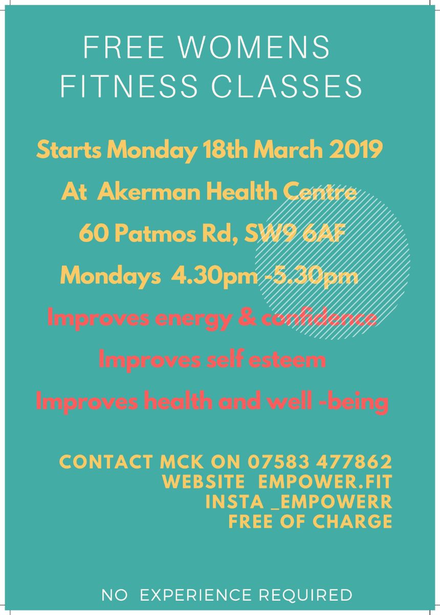 Free women’s fitness classes at Akerman Health Centre from 18th March